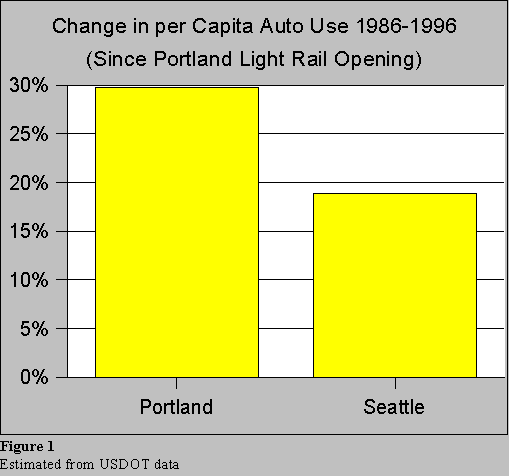From 1986 (the year before Portland's light rail line opened) to 1996,