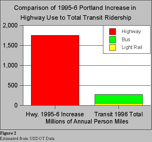 By comparison, total transit passenger miles were 272 million. The increase in private vehicle use was more than 35