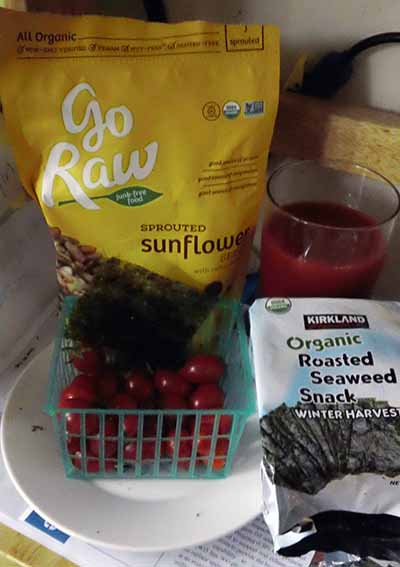 of green tea + nonfat milk 10:30 -- 2 hand-fulls of Cashews 11:00-ish -- one pint of coffee + nonfat milk and the occasional tablespoon of Bailey's Irish Cream ( I'm bad) If and when I feel hungry I have around 6 cherry tomatoes microwaved and a glass of V8 Low Sodium . 4pm(around) Dinner 6pm Dessert( fruit) COSTCO: |